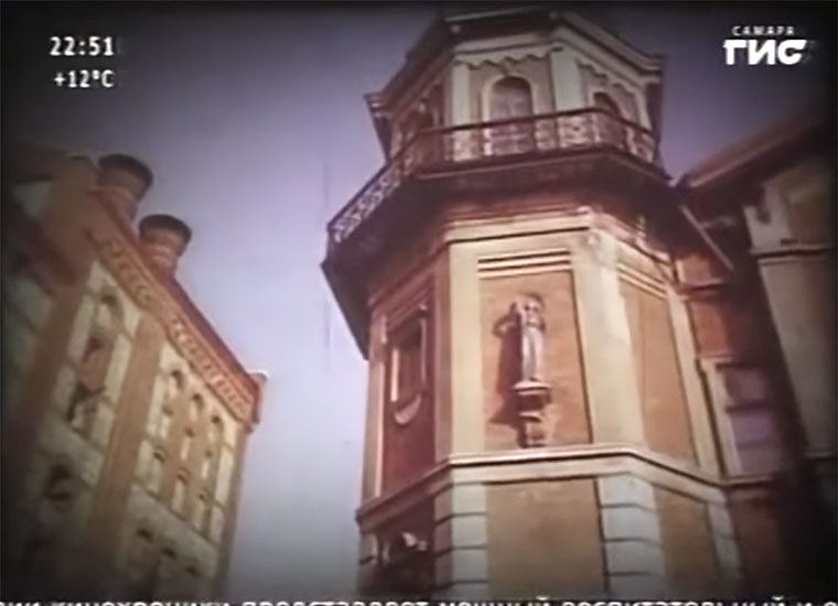 | Далее в фильме показаны основные архитектурные достопримечательности города и среди них строения собственно "Жигулевского пивзавода" построенного в 1881-м году Альфредом фон Вакано (и инициалы FV мы видим на флюгере установленном над заводской трубой). | ||||||||||||||||||||||||||||||