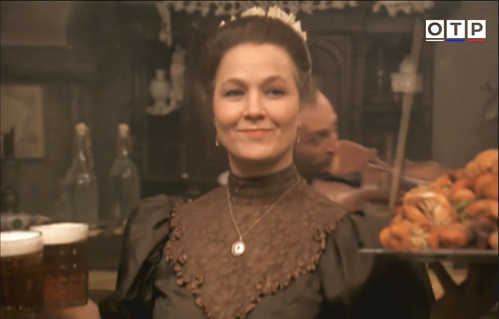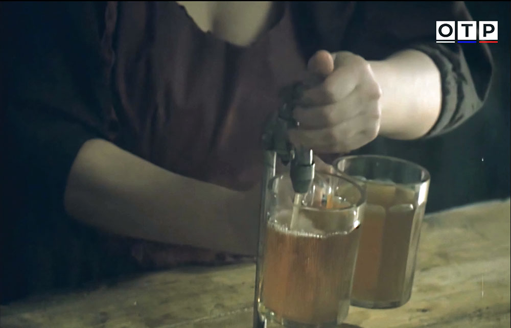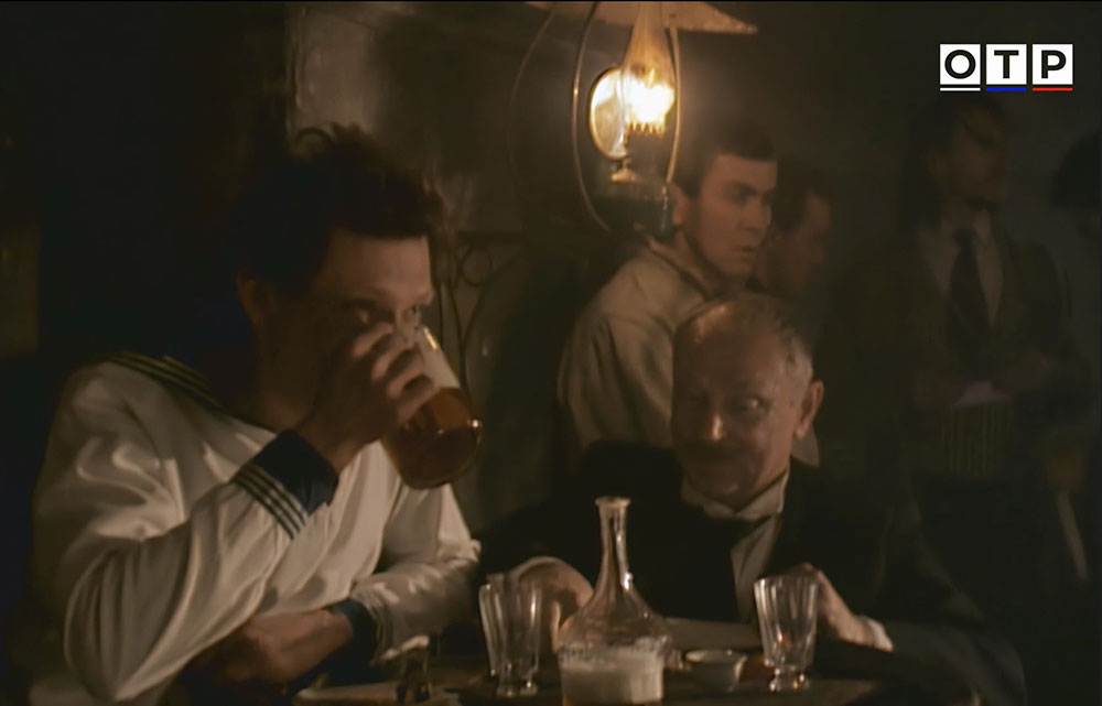| "Гамбринус" - художественный фильм снятый режиссером Дмитрием Месхиевым по сценарию Валерия Тодоровского на "Одесской киностудии" ("Первое творческое объединение") в 1990-м году. Это драма, поставленная по мотивам одноименного рассказа Александра Куприна. Отобрать кадры для этого обзора было сложно, потому как все действие фильма (кроме последней черно-белой сцены еврейского погрома) происходит в пивной "Гамбринус". Прототипом является кабак "Гамбринус" в Одессе, на углу Дерибасовской и Преображенской (хотя в фильме - город конкретно не назван), а все съемки проводились в павильонах студии. Действие фильма происходит в десятых годах прошлого века. В кадре постоянно мелькают пивные кружки, довольно разные, как типичные скорее для послевоенного времени, так и современные, некоторые похожи и на кружки начала прошлого века. Видна система розлива, насколько она аутентичная сказать сложно. Мелькают и пивные бутылки, на одной, объемом в 1/20 ведра даже заметен краешек этикетки. Видны бутылки с керамическими пробками на металлических хомутах, причем разного вида. Пивзаводов в Одессе было много, многие использовали такие пробки, приведу для примера подобную от завода Ф. Енни. Основная закуска в пивной - раки. Ну и диалог из фильма буфетчицы и скрипача: - Саша, вы можете хоть один день не пить? - Не знаю, на знаю мадам Иванова, я всегда пью пиво. - Вы ничего не кушаете, вы можете умереть, я первый раз вижу человека который кушает только одно пиво. |