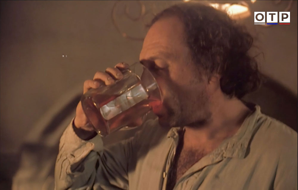 | "Чертов пьяница" - художественный фильм снятый режиссером Юрием Манусовым по собственному сценарию на ТО "Грааль" в 1991-м году. Сюжет в фильме крутится вокруг бутылки водки волшебным образом появляющейся в токарном станке. Однако пиву тоже уделено много внимая. Показана типичная пивная, виден кран розлива, кружки используются цилиндрические, с рисунком в виде выемок (хотя в ходу уже и стеклянные поллитровые банки вместо кружек, эра всеобщего дефицита на дворе!). Но чаще пиво пьется не в пивной, а у черного входа, где народ сидит на ящиках, а вместо столика - люк канализации. Под закуску - вяленая (или копченая) рыба. Фильм снимали в Одессе, потому пиво в кадре - скорее всего "Жигулевское" одного из Одесских пивзаводов. | ||||||||||||||||||||||||||||||
