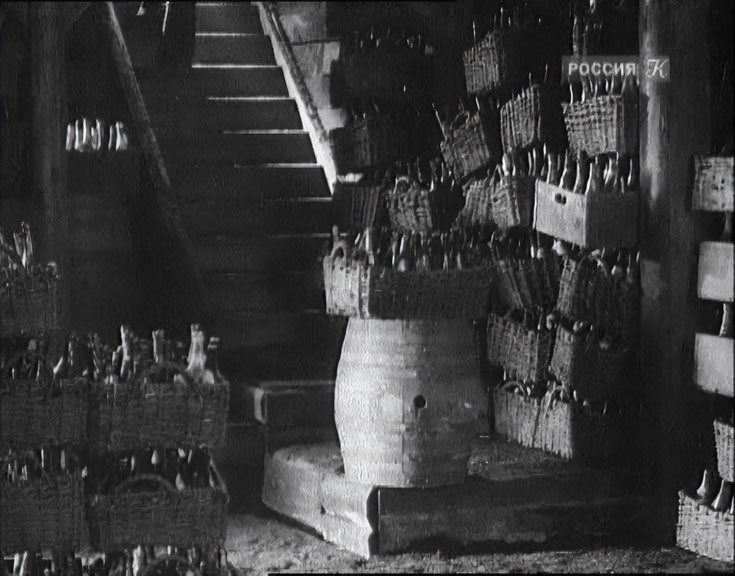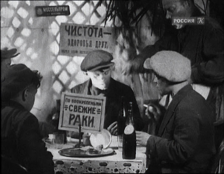 | "Кружева" - черно-белый, немой художественный фильм снятый режиссером Сергеем Юткевичем на киностудии "Совкино" в 1928-м году. Фильм снят по мотивам рассказа М. Колосова "Стенгаз" и рассказывает о жизни рабочей молодежи конца 1920-х годов (работающих на текстильной фабрике производящей кружева). Первая постановка Сергея Юткевича, а от себя отмечу весьма изобретательную работу оператора. В фильме есть два эпизода с пивом, первый - распитие пива на природе, но там детали сложно разглядеть, во втором эпизоде, показан летний сад и пивная "Фабричная мечта". В пивной предлагается бутылочное пиво московского "Трехгорного пивзавода". Видны бутылки 0,6 литра с гербом завода, они закрыты корковыми пробками типа винных и открываются штопором. Этикетки подробно рассмотреть сложно, дизайн скорее всего такой (этикетки приведены ниже), на одном из кадров название вроде бы читается как "Кульмбахское", возможно другие этикетки пива это "Светлое №2" - ОСТовская версия "Пильзенского" (сам ОСТ как раз вступил в действие в 28-м году). Кружки широкие, не граненные, а с рисунком в виде выемок и похоже объема 0,6 л. В пивной видно много всяких плакатов, как самого "Трехгорного пивзавода", так и самодельных - "Пивом себя тешь", "В кредит ни кому, хотя бы и вам", "Чистота - здоровья друг", "По воскресеньям - свежие раки" и т. д. Выпивается в пивной не мало бутылочного пива, потому в погребе целые залежи пустых бутылок в корзинах. Публика в пивной - рабочая, по тогдашней моде, местные хулиганы носят кепки в клоунскую клетку. В конце фильма - комсомольцы пивную закрывают и открывают вместо нее летнюю площадку Клуба. | ||||||||||||||||||||||||||||||