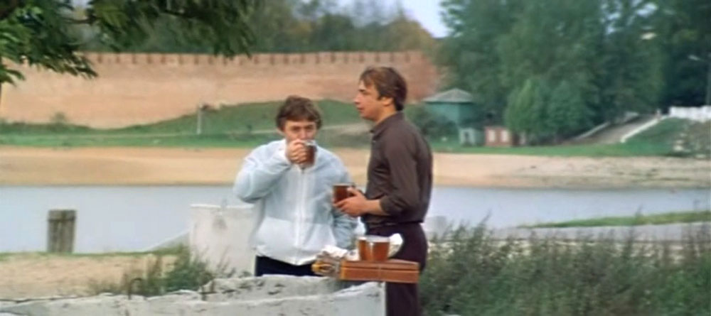 | "Преферанс по пятницам" - широкоэкранный художественный фильм, криминальная драма снятая режиссером Игорем Шешуковым на киностудии "Ленфильм" ("Первое творческое объединение") в 1984-м году. Снимали в Великом Новгороде и в фильме есть сцена, где герои пьют пиво на берегу Волхова и видны стены Кремля. Пиво очевидно наливают в пивной палатке, которую в кадре не видно. Пиво пьется из типичных для того времени граненных общепитовских кружек. Пиво - скорее всего от местного пивзавода. В 1973-ем году старый (еще дореволюционный пивзавод "Богемия") был закрыт и вместо него открыт "Новгородский пиво-солодовенный завод", пиво от которого и может быть в кадре. Уже в современной России, завод стал называться "Дека", стал более известен своим квасом "Никола" а не пивом и в 2025-м году закрыт. | ||||||||||||||||||||||||||||||