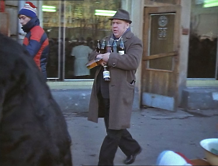 | Наконец, еще в одной сцене, мы уже видим питие пива на летней площадке кафе или пивной, здесь пиво пьют из классических общепитовских граненных кружек. | ||||||||||||||||||||||||||||||