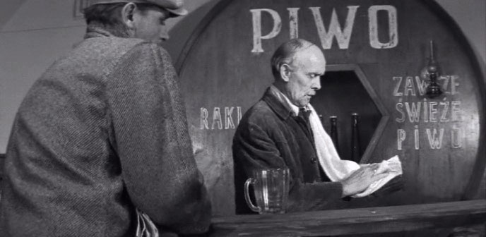 | "Человек, который сомневается" - черно-белый художественный фильм снятый режиссерами Леонидом Аграновичем и Владимиром Семаковым на киностудии "Мосфильм" в 1963-м году. В основе сюжета реальное дело об убийстве девушки, произошедшее в Омске в 1958-м году. Снимали фильм в Ярославле, в том числе в ярославской тюрьме. Одна из сцен снималась в буфете/кафе в котором имеется разливное пиво (и судя по большему числу ящиков - и бутылочное тоже). Видна система розлива пива с ручным насосом, пиво пьется из пузатых кружек с рисунком в виде выемок, похожих на английские пабные кружки, но более пузатых. Какое пиво в кадре? По месту съемок - наиболее вероятно "Жигулевское" от старого Ярославского пивзавода (в то время он еще не был "старым"). |