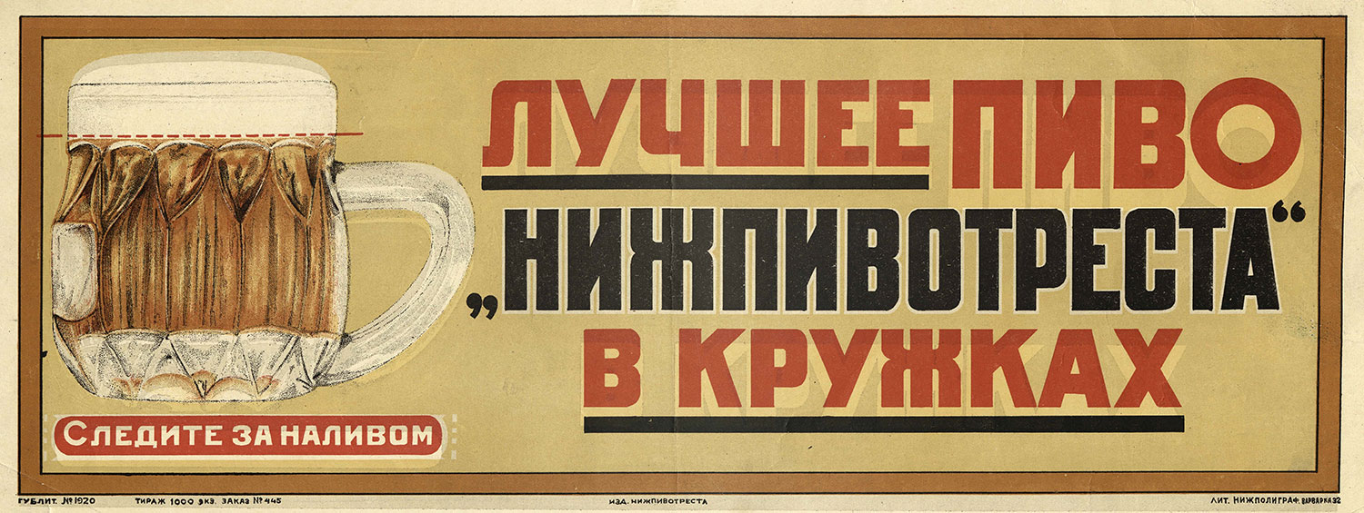 | Плакат завода Бавария. | Плакат Нижпивотреста. | Плакат Краснодарского бродтреста. | Реклама Ростоблбродтреста. | Прейс-курант Орджоникидзовского бродтреста. | ||||||||||||||||||||||||||||||||||||