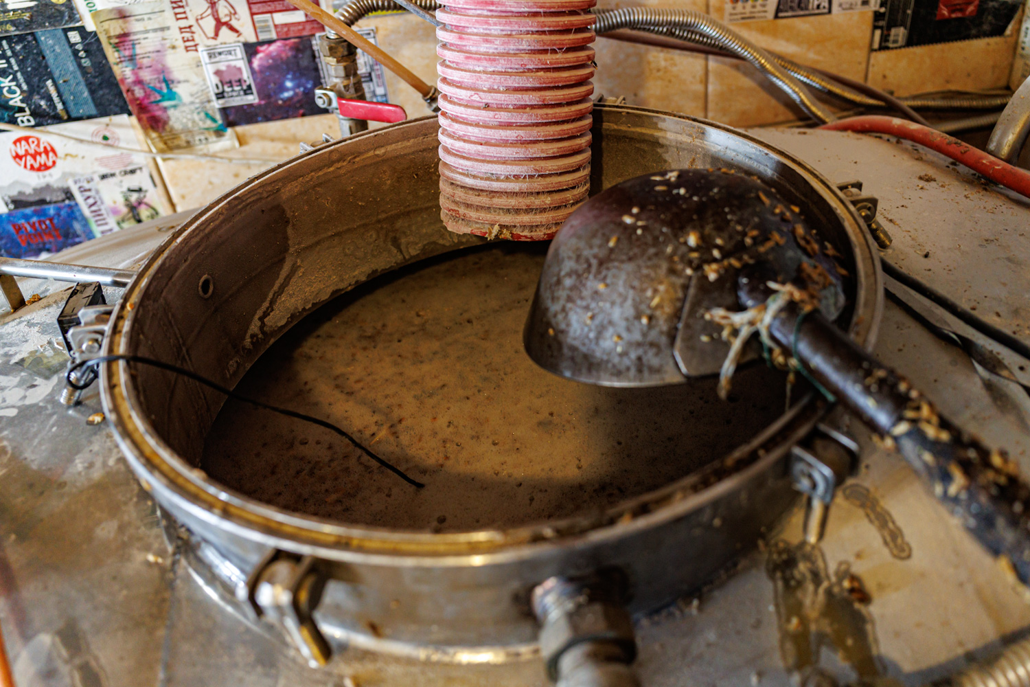 В эту поездку в Жаворонки, тоже варили пиво, решили сделать светлое и полегче, под майские праздники и шашлыки. Так что засыпь уменьшили со 100 кг. на полтонный варочник до 90 кг. и плотность вышла 13%. Хмеля положили 1 кг. на горечь (Центениал, но довольно старый), а на ароматику более свежего китайского (полкило), так что посмотрим, что за китайский пилснер у нас в итоге выйдет. |