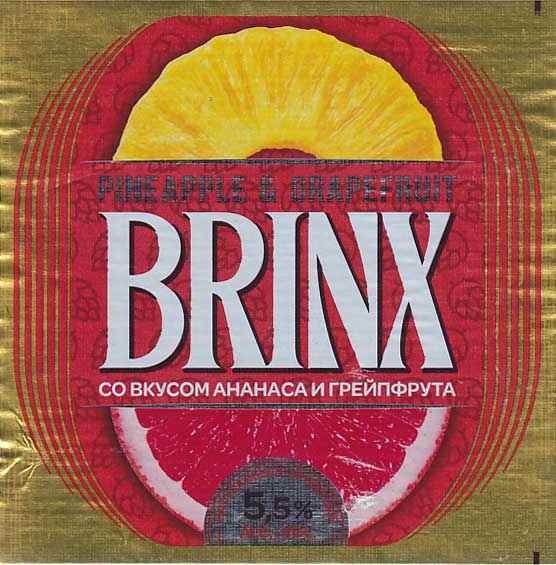 | Еще одна новинка - "Старый мельник из бочонка, медовое" (хотя в провинции он появился раньше чем в столицах, но потому как варится - на Уфимском филиале). Вкус тоже порадовал - вполне натуральный аромат и привкус мёда во вкусе, без излишней сладости, гармоничный с солодовой основой, даже с некой горчинкой в стиле гречишного мёда. Но вот будут ли это покупать? В сети "Чижик" продается еще такое "вкусовое" пиво - "Бринкс со вкусом и ароматом ананаса и грейпфрута". Сварено на Саранском филиале, на этикетке есть небольшая "блоха" - сменился значок типографии, потому купил для коллекции. По вкусу - есть тона грейпфрута и вишни, но по мне - излишне сладко, хотя возможно - обычный потребитель именно такое любит. |