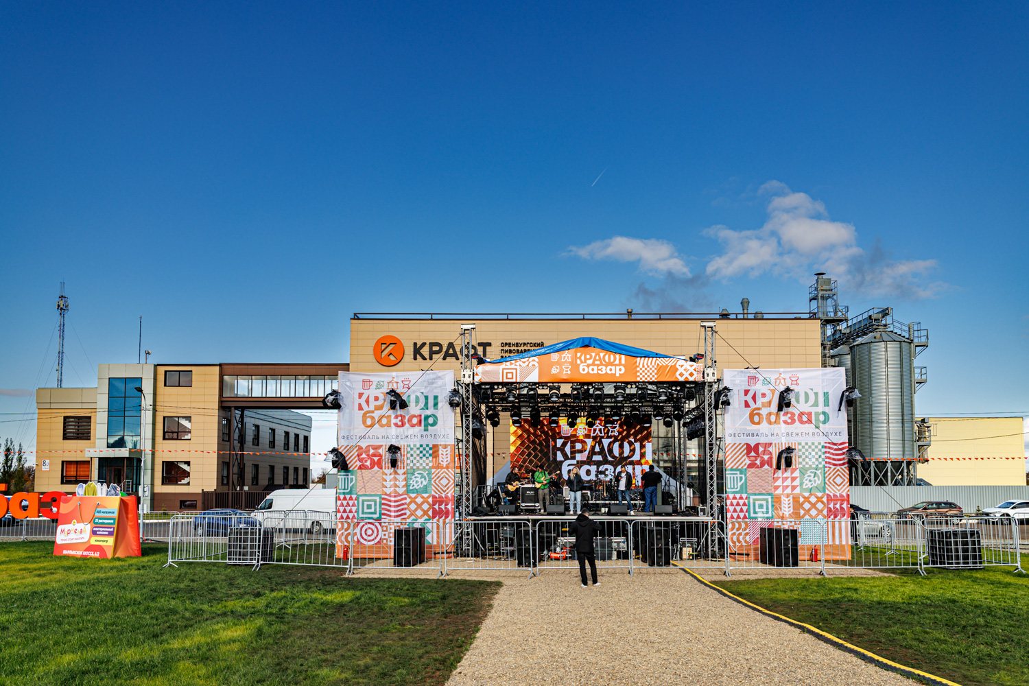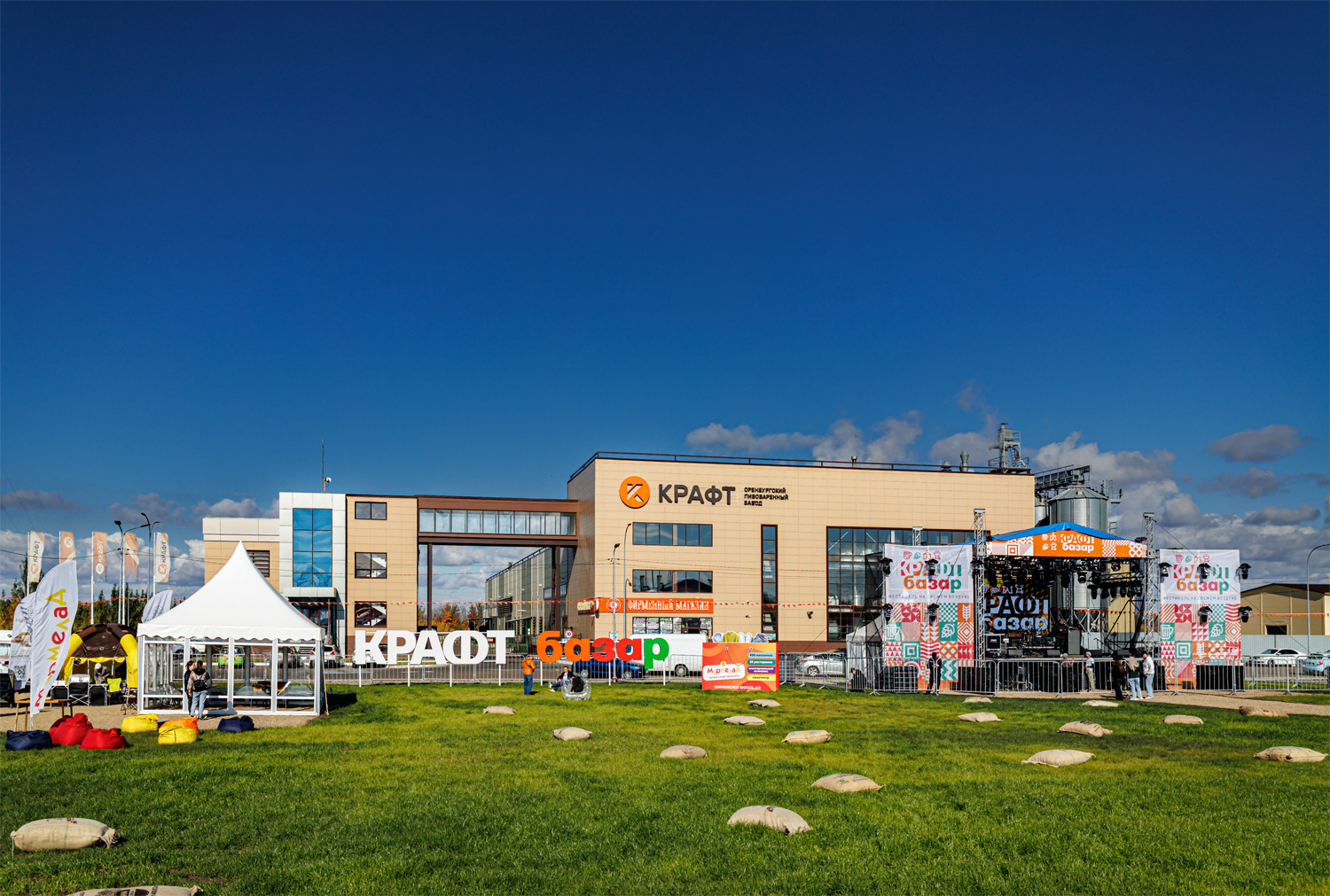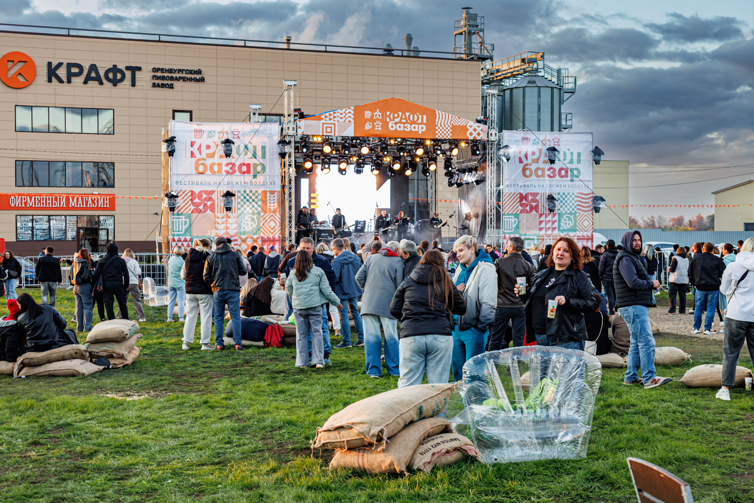 Фестиваль напитков, гастрономии и музыки "Крафт базар" прошел в Оренбурге 27-28 сентября, организован он был к 10-ти летию пивзавода "Крафт". Проводился он на поляне перед заводом (улица Тихая, 8/2), кроме пива собственно от "Крафта" были представлены еще полтора десятка пивзаводов и медоварен с довольно широкой географией (а вот сидра - не было). Билет стоил 4000 р. на день или 5500 на два, на пиво был полный безлимит, организовано все было на отлично, пожалуй впервые увидел как на фестиваль охрана начала пускать посетителей еще до официального открытия, единственно что подкачало - это погода. За несколько дней до этого, в Оренбурге еще было лето и +25°, но к выходным, когда проводился фестиваль, она упала до 10°, а во второй день было еще пасмурно и дождь накрапывал. Но было куплено по 1000 билетов на день, так что примерно столько посетителей и пришло, но уже ближе к вечеру, когда выступали известные музыканты. Поскольку фестиваль проходил фактически за городом, была организована доставка посетителей на автобусах из центра города. Музыкальные коллективы, кстати, были очень востребованы, во время выступлений пиво фактически не проливалась, все стояли у сцены (выступали "Йоп Шоу", "Хитобои", Rock Privet и другие), для публики имелось и много других развлечений, в том числе лекции в отдельном шатре, где я тоже рассказал желающим про советские сорта пива. Также ведущие на сцене разыгрывали различные ценные призы. Закуски под пиво имелись, туалетов хватало, посидеть можно было на мешках с сеном разбросанных по поляне или на скамейках со столиками в шатрах, были даже мойки для бокалов, которых часто не бывает даже на крафтовых фестивалях, сам бокал был очень удобный, толстого пластика и с фестивальным рисунком. Имелась в продаже и другая пивная и около пивная атрибутика.