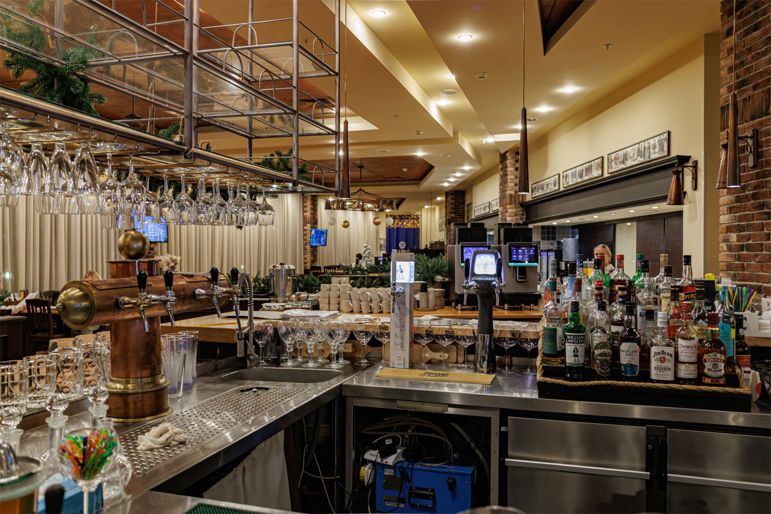 Гостиница Cosmos ранее называлась Park Inn (все это - сеть Radisson) и при ней был ресторан Paulaner которые теперь и называется Brauplatz. Интерьеры ресторана сохранились, ресторан небольшой и вполне уютный, кухня осталась с ориентацией на баварскую, а пиво больше не Paulaner, а в основном "Балтика". Хотя наиболее интересные сорта - на кране "Балтика helles" - которая бывает только разливной, а в бутылках и банках есть "Блонд" и "Брюн" проекта "Балтика Брю", бельгийскую тему дополняет "Крон бланш бьер", а также имеются APA и IPA от "Горьковской пивоварни" (сваренное на "Балтике"). Также имеется пиво под локальным брендом "Ярославское" - как в розлив, так и бутылочное. Интересно, что на кранах еще стоят блонд или брюн "Аббе" от "Инбев-Эфес". То есть выбор пива не богатый, но вполне интересный (я бы добавил еще "Балтику stout", вот тогда пиво было бы на любой вкус), цены - 440-460 р. за разливное и 350-490 р. за тарированное (поллитровая кружка, а бутылки-банки - 0,45 л.). Кухня вполне приличная, а по ценам: супы - около 500 р., колбаски - около 800 р. Кроме пива, имеются и другие алкогольные напитки (и конечно - безалкогольные).