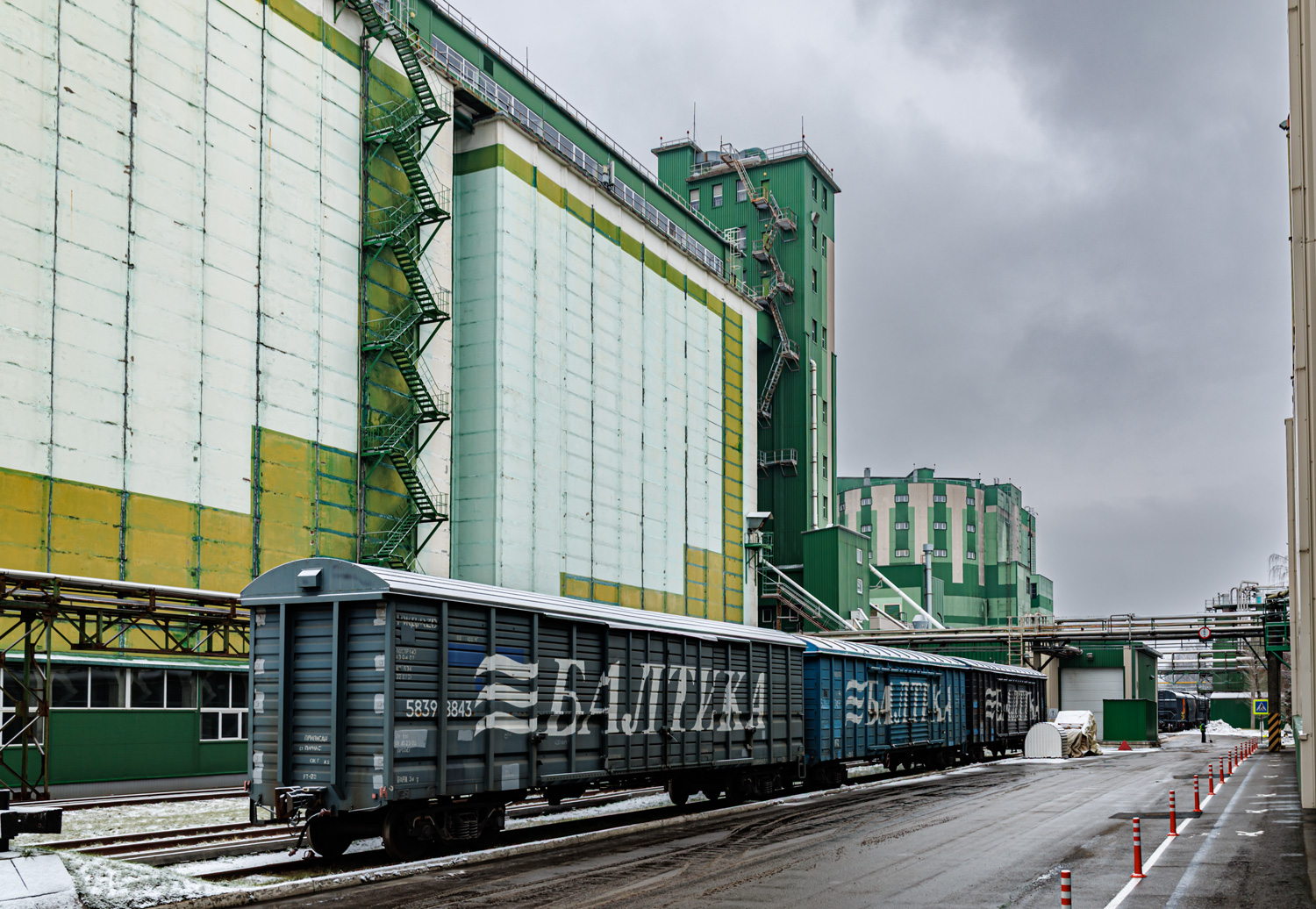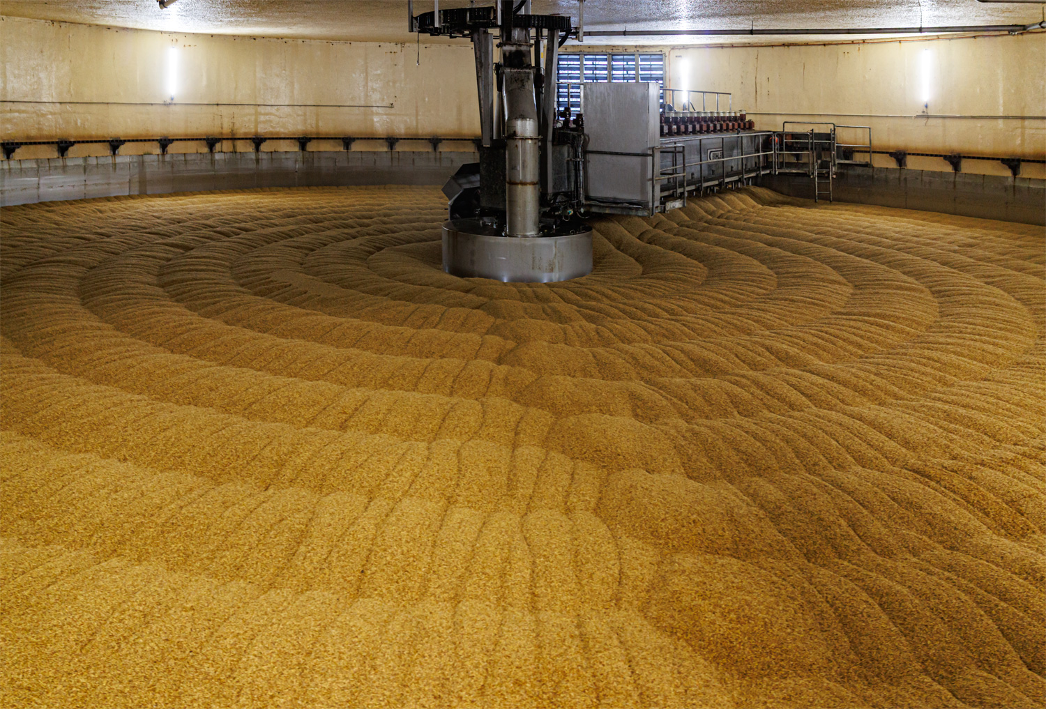 | Зернохранилища с зерном и солодом, справа - здание солодовни. | ||||||||||||||||||||||||||||||||