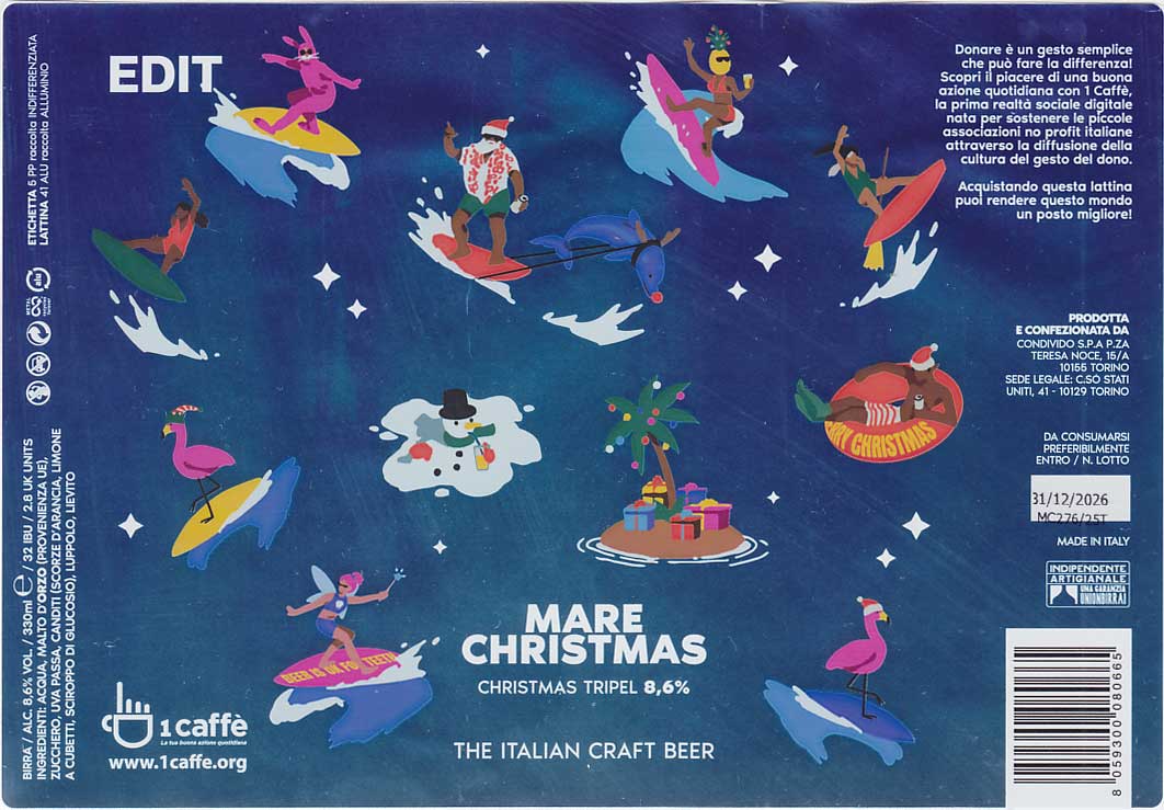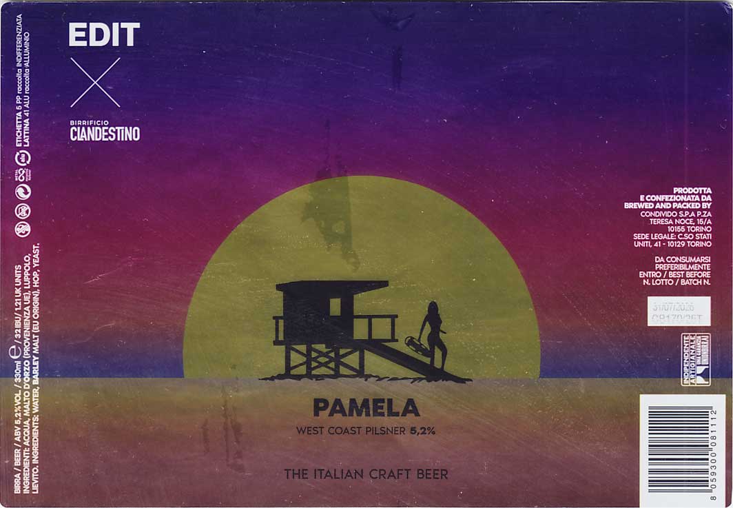 Edit Brewing, "Torino Magica" (Wheat Beer - Witbier / Blanche) - вкус мятный, фруктовый, но жидковатый и водянистый. "Pamela" (Pilsner - Other) - на самой банке стиль описан как West coast pilsner, хотя это явно IPL - в аромате и вкусе явный американский хмель - цитрусовые тона и прочие тропические фрукты. Чисто, горечь не сильная, но ощутимая. "Mare Christmas" (Belgian Tripel) - вкус мятный или может гвоздичный, в остальном фрукты, бананы, но характер именно бельгийский. Крепость скрыта. |