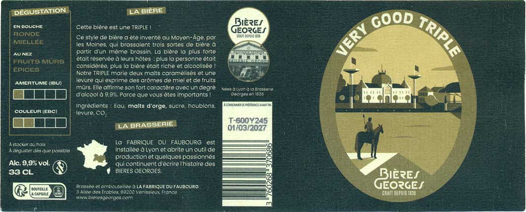 Bières Georges • La Fabrique Du Faubourg, "Munica Brune²" (Porter - Other) - довольно охмеленный портер, не сильно плотный и крепкий (алкоголь не заметен), бархатный и карамельный. "Very Good Triple" (Belgian Tripel, 9,9% алкоголя) - действительно - очень хороший трипель, довольно крепкий, фруктовый и даже чуть ореховый вкус с бельгийским характером. |