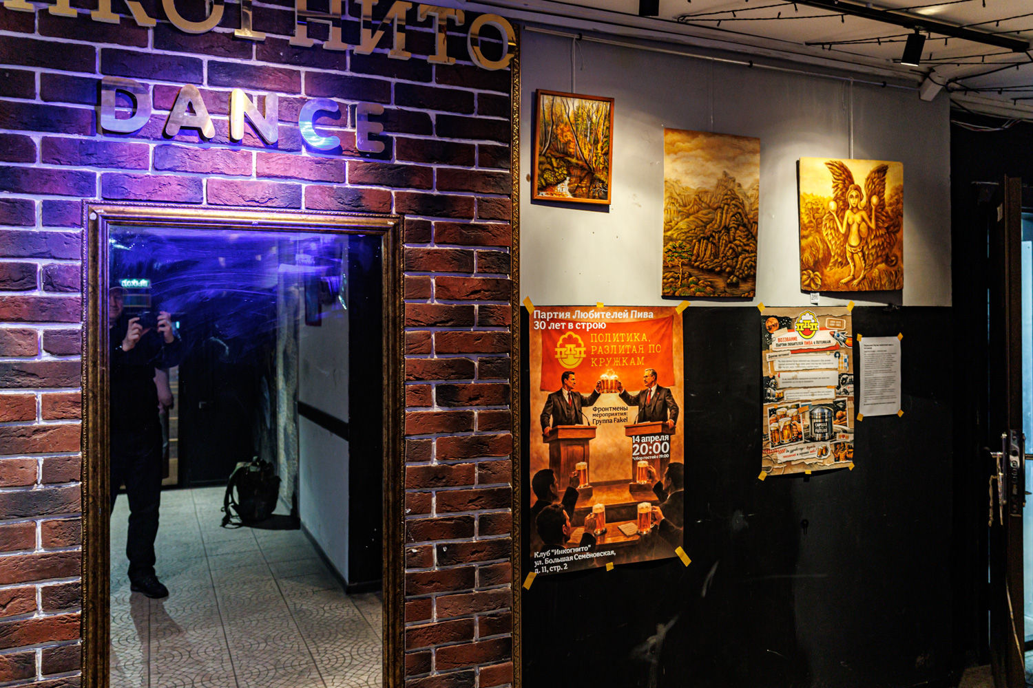Клуб "Инкогнито" - расположен недалеко от станции метро Электрозаводская, на Большой Семеновская улице, 11с1. В клубе организуются различные вечеринки и банкеты, ориентированные на людей постарше и работает он с 17-ти вечера до 6-ти утра. Интерьер с привычным неоштукатуренным кирпичом, окна интересно подсвечены, имеются столы с кожаными диванами у окон и со стульями - в центре. Можно посидеть и у барной стойки, хотя она небольшая. Меню разнообразное, цены приемлемые, имеется различный алкоголь, пиво - в основном различные лицензионные сорта известных европейских марок.