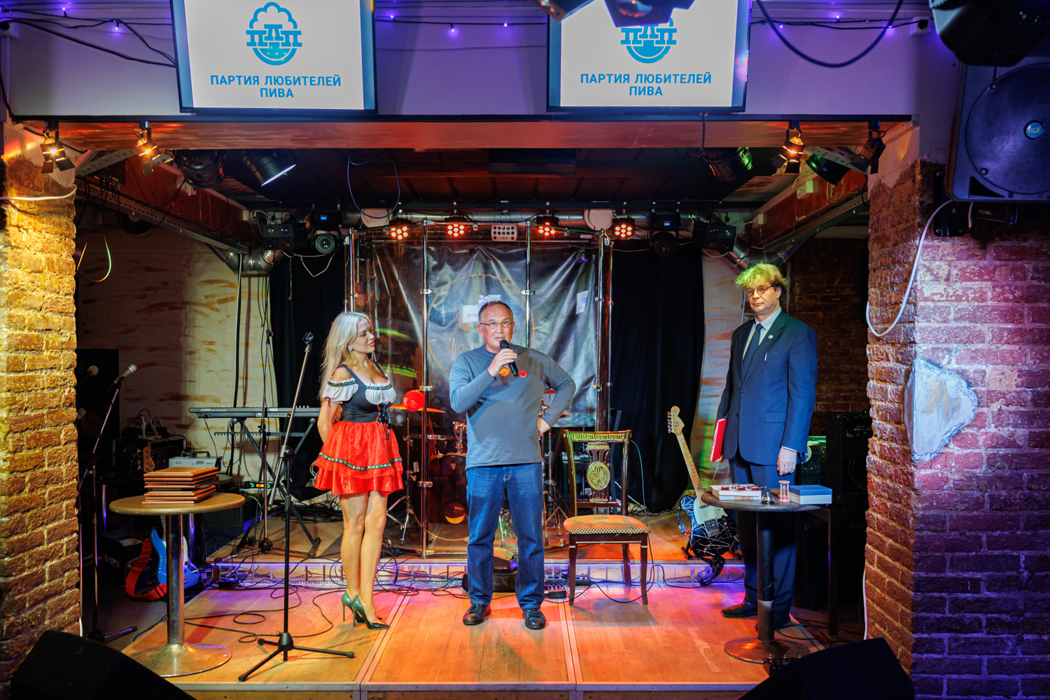 "Партия Любителей Пива" - была организована и зарегистрирована уже 30 лет назад, хотя сейчас находится в стадии ожидания перерегистрации и вечеринка под названием "Политика, разлитая по кружкам" была по большей части посвящена чествованию ветеранов. Вручали памятные знаки, вручили и мне, хотя формально я и не состоял членом партии, но 25 лет назад, Сергей Непрокин, секретарь воронежского отделения ПЛП вручил мне партбилет, который у меня конечно сохранился (лежит в левом кармане пиджака, прямо над сердцем ;-) . После торжественной части (включавшей просмотр фильма о партии, а также составления письма потомкам) был дан "живой" концерт, ну а пиво на встрече было тоже "живое", от пивоварни "Старый Байкер Белая Борода" из Иваново. Пили 4 сорта: "Лагер", "Венское", "Карамельное" и "Стаут". Про пиво подробнее расскажу в своем следующем выпуске "Ящик пива". Кстати, среди гостей, был посол Австрии в РФ (в прошлом году, их "Партия Пива" участвовала в выборах австрийского парламента).