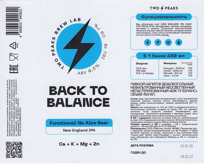 Бэк ту бэланс. Светлое. Крепость - 0,5% vol. Калорийность - 25 ккал. |