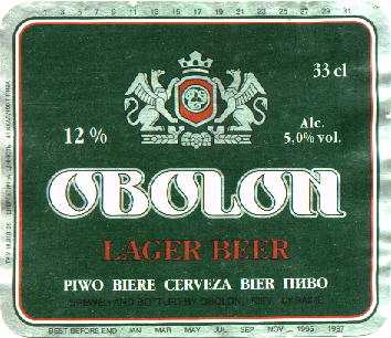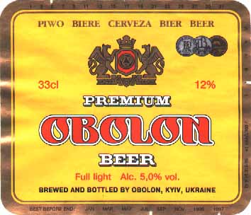Киев. "Обокен" она же "Оболонь". 4.5% об. -- Light, 5.3% об. -- Strong. Вкус близок к кpасновостоковскому "Юбилейному", но слаще (слегка пpитушенный и кажется кpепленым). Лучший соpт сpеди этих униатов. [4] |
