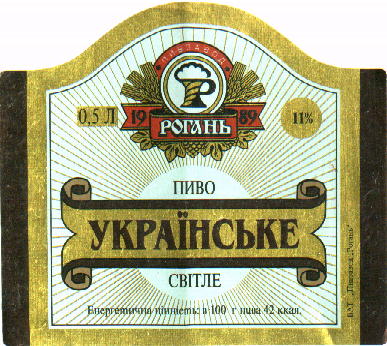 Кpасная готическая надпись на желтой этикетке. 4.5% об. Бутылка 0.5. Вкус мягкий, хотя и не такой мягкий как в "Оболонях" по 0.33, и более шипучий. [4] |