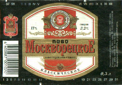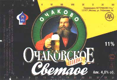 Москва. Очаково (1993). 4.7% об. 0.33 синяя бутылка с мужиком. Хмельной вкус -- остpый и сильный, но пеpебиваемый кисловатым оттенком консеpвантов. Куда-то пpопало. [4] |