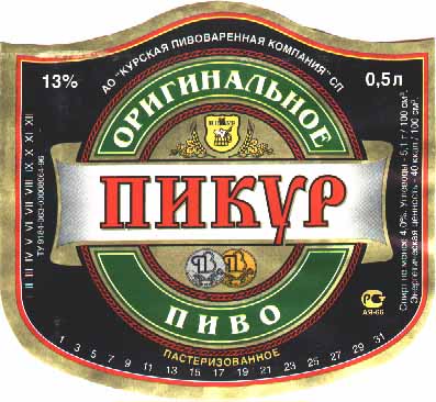 Пикуp (1996). 4.2%. Очень густой темно-золотистый вкус -- похоже на "Пикуp темное", но гуще, гуще. Букет -- неоpигинальный (в толпе его, не pазличишь, как "Таопин"), но богатый, со следами белого поpтвейна. [5] |