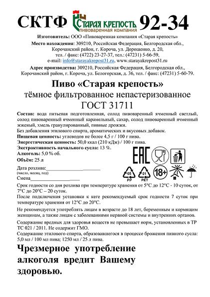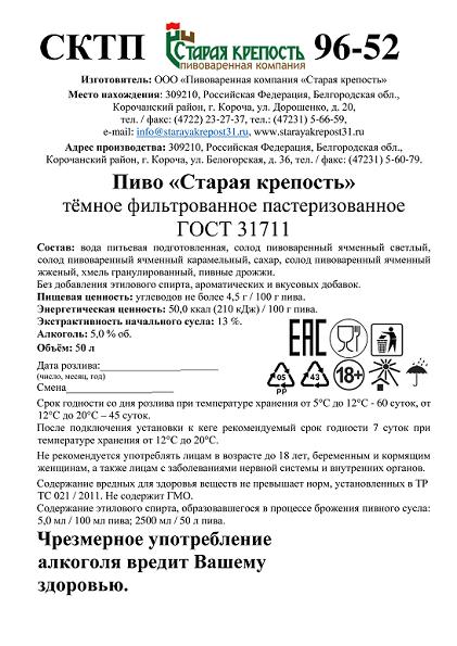 Старая крепость фильтрованное 50л 3