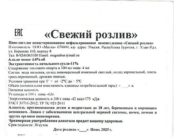 Свежий розлив 12