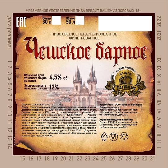 Чешское барное нефильтрованное 6