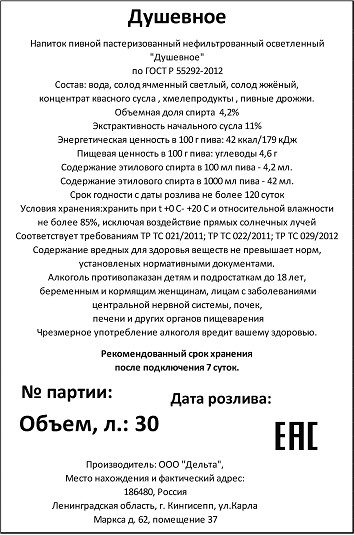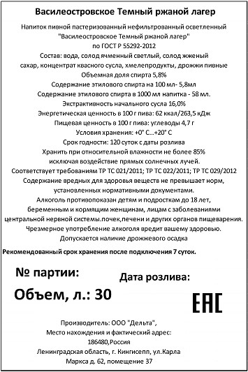 Василеостровское Темный Ржаной Лагер 6