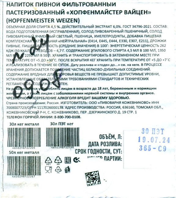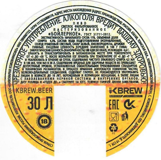Бойлерное нефильтрованное КЕГ 7