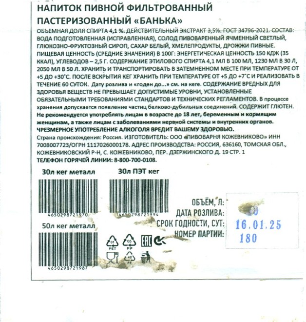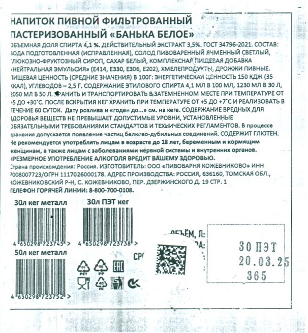 Бойлерное нефильтрованное КЕГ 4