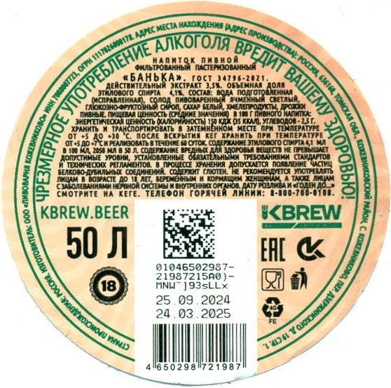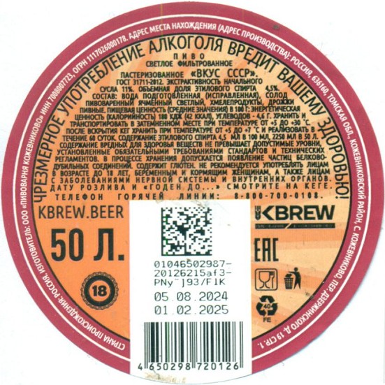 Андрей нефильтрованное КЕГ 1
