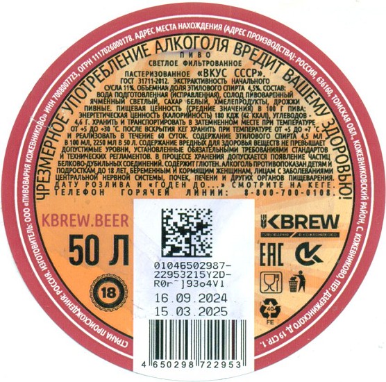 Андрей бочковое КЕГ 1