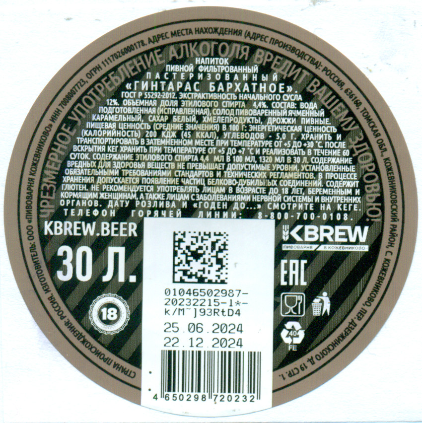 Бархатное КЕГ 1