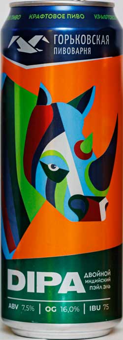 Горьковская пивоварня, двойной индийский пэйл эль. Светлое. Плотность - 16%. Крепость - 7,5% vol. Калорийность - 60 ккал. |