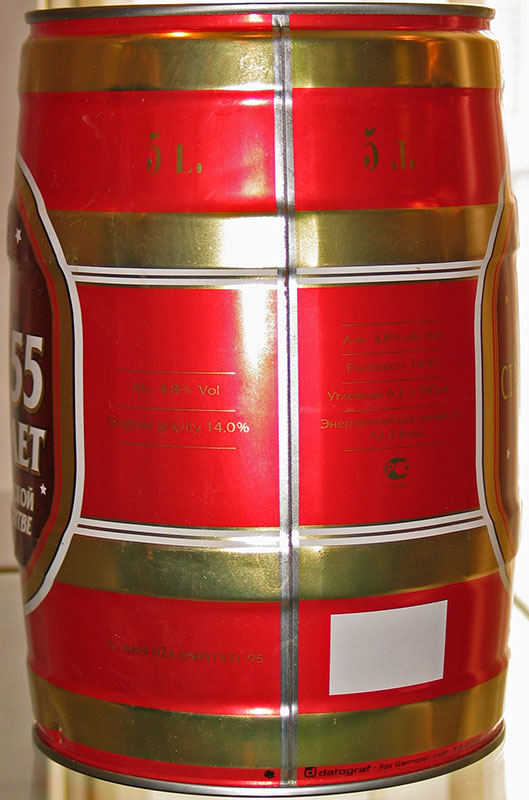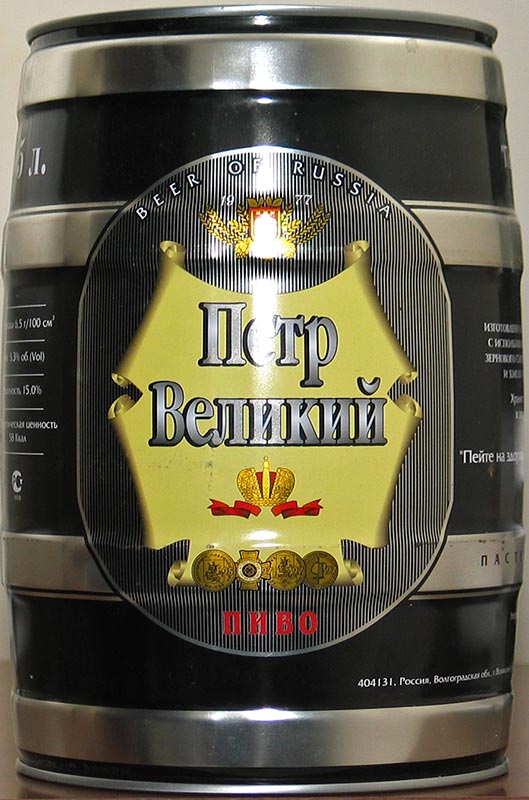 Петр Великий. Светлое. Плотность - 15%. Крепость - 5,3% vol. Калорийность - 58 ккал. |