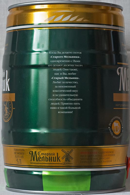 Старый мельник, светлое. Светлое. Плотность - 11%. Крепость - 4,6% vol. Калорийность - 42 ккал. |