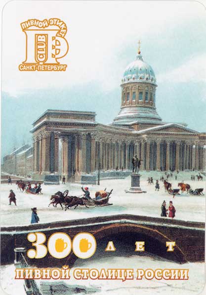 44. 300 лет пивной столице России. С LUB «Пивной этикет» Санкт-Петербург. В: а) Казанский собор б) всадник с кружкой пива, жёлтый фон в) всадник с кружкой пива, чёрный фон |