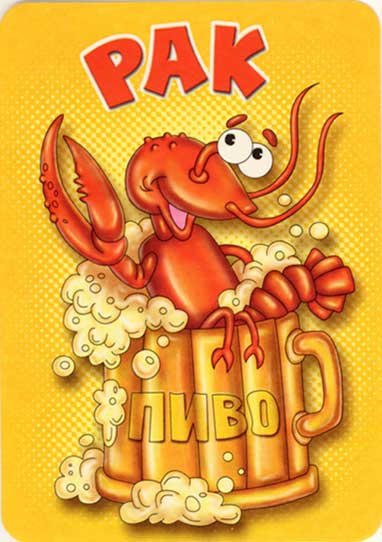 | 125. Рак в кружке пива. В: а) ЗАО «Мир поздравлений». 610.034. Ламинированный б) ЗАО «Мир поздравлений». 610.034. Неламинированный. в) ООО «Открытое письмо». Дизайн 610034 |