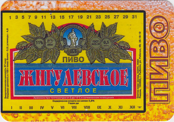 1. Выпуск А. Лидерс Пиво 1 - 10. Г: а) «Братина»; б) «Владимир Мономах»; в) «Град Симбирск»; г) «Жигулевское» Рыбинский ПЗ; д) «Жигулевское» Челпикс; е) «Матырское»; ж) «Московское» Бийский ЗБН; з) «Московское» Рыбинский ПЗ; и) «Юбилейное»; к) «Ячменный колос». |