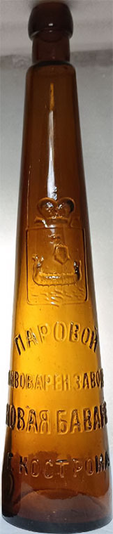 | Показанный здесь трактир - принадлежит С. И. Вавилову. Опять же, информации по С. И. Вавилову у меня нет, посмотрим лучше на пивные бутылки из которых пьют пиво в трактире. Похоже здесь тоже пьется пиво от "Трехгорного" и "Шаболовского" пивзаводов, но вот еще одна бутылка - от костромского пивзавода "Новая Бавария". "Баварий" (в том числе и "Новых") в Российской Империи было не мало, паровой пивоваренный завод "Новая Бавария" и заведение искусственных минеральных и фруктовых вод в Костроме - был основан в 1871-ом году купцом Н. Я. Устиновым. После его смерти принадлежал его наследникам, а арендовал - Викентьев. С 1890-го года завод уже принадлежал братьям Викентьевым. В 1896-м году его покупает чех Эмиль Куни. После революции пивзавод был национализирован, выпускал пиво и фруктовые воды. В предвоенный период он именовался как "Пивоваренный завод Костромского Промкомбината". 30-го марта 1992-го года "Костромской пивзавод" был приватизирован и стал называться "Росич". После нескольких переименований завод был закрыт в конце 90-х годов. | ||||||||||||||||||||||||||||||||||||