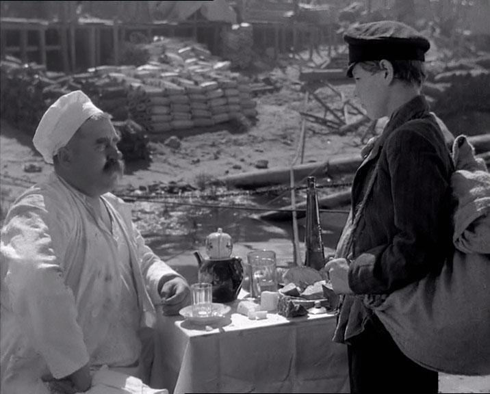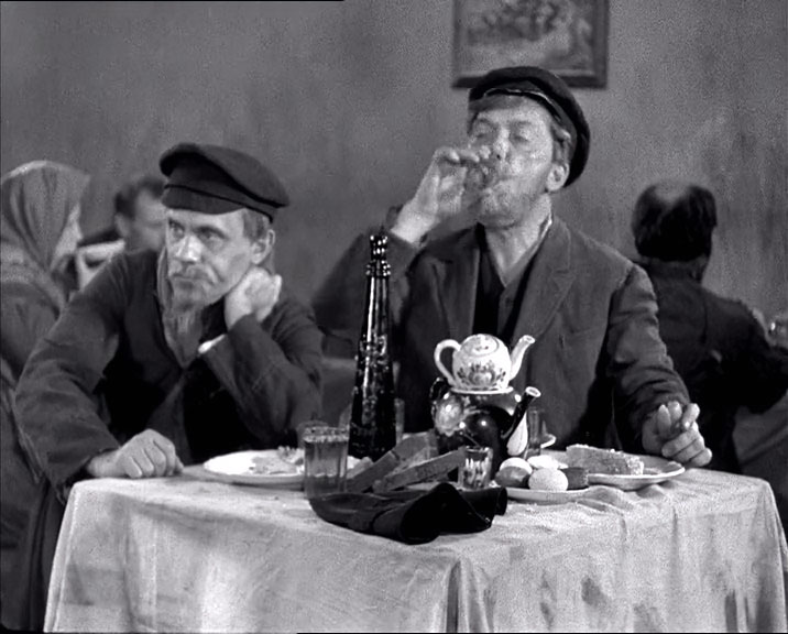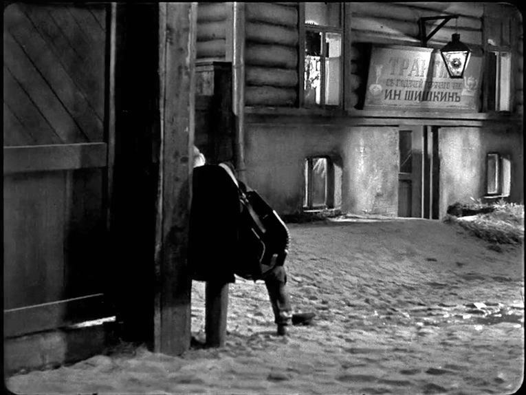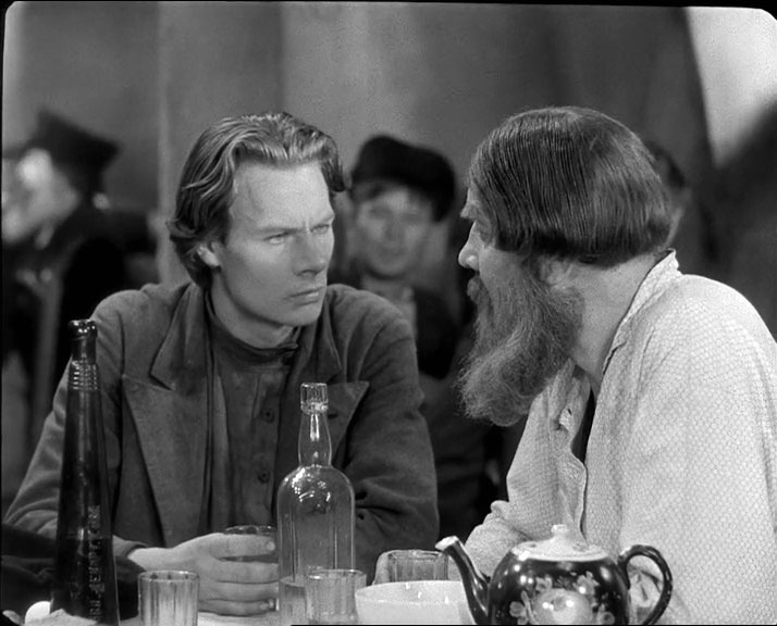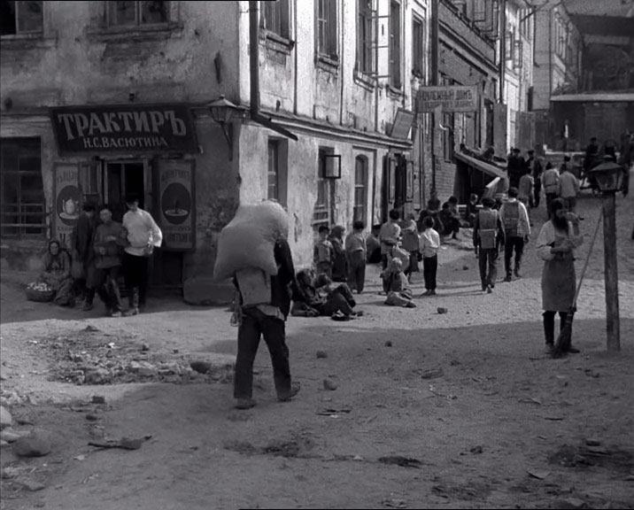 | "Детство Горького" - черно-белый полнометражный художественный фильм по первой повести из автобиографической трилогии Максима Горького. Режиссер - Марк Донской, снят на киностудии "Союздетфильм", вышел на экраны 18-го июня 1938-го года. Роль Алеши Пешкова - единственная работа в кино Алексея Лярского (он погиб на фронте 8-го февраля 1943-го года). Дело происходит в Нижнем Новгороде, в середине 70-х годов XIX-го века. В первой части трилогии из околопивного можно только видеть Трактиръ "с подачей горячего чаю" И. Н. Шишкина. О И. Н. Шишкине ничего сказать не могу, возможно владелец трактира относится к известной купеческой семье Шишкиных из Елабуги. | ||||||||||||||||||||||||||||||||||||