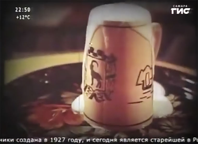 | Далее в фильме показаны основные архитектурные достопримечательности города и среди них строения собственно "Жигулевского пивзавода" построенного в 1881-м году Альфредом фон Вакано (и инициалы FV мы видим на флюгере установленном над заводской трубой). | ||||||||||||||||||||||||||||||||||||