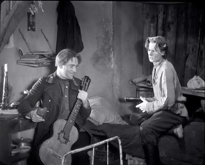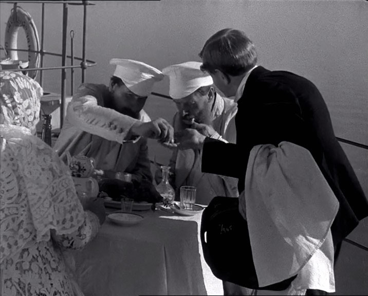 | "В людях" - черно-белый полнометражный художественный фильм режиссера Марка Донского снятый на киностудии "Союздетфильм". Экранизация второй части автобиографической трилогии Максима Горького. Выход на экран состоялся 31-го марта 1939-го года. Во второй части трилогии пиво в кадре появляется неоднократно. Во-первых, на колесном пароходе "Добрый", где пиво пьет повар на палубе, в каюте у него тоже стоят пивные бутылки, пивная кружка ну и непременный чайник. Пьют пиво и пассажиры на верхней палубе. Бутылки - скорее всего московского Трехгорного завода, отчетливо это видно в следующей сцене, но реквизит был явно один. Пивная кружка - цилиндрическая и похоже граненая. | ||||||||||||||||||||||||||||||||||||