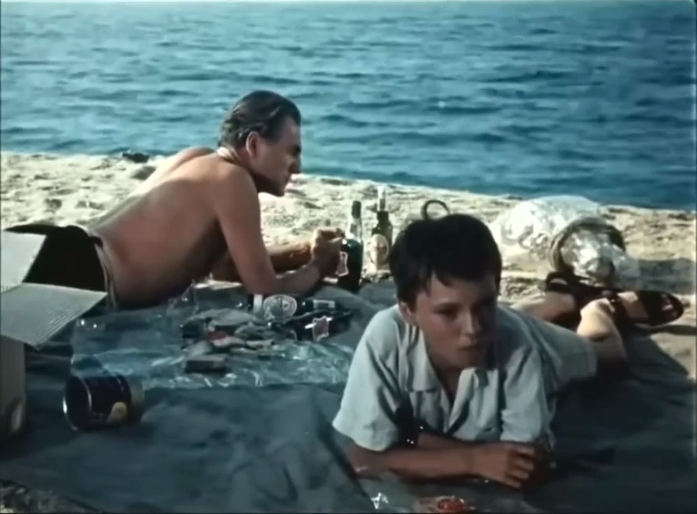 | "Последний дюйм" - цветной художественный приключенческий фильм-драма, снятый на киностудии "Ленфильм" в 1958-м году режиссерами Теодором Вульфовичем и Никитой Курихиным по одноименному рассказу Джеймса Олдриджа (этот рассказ был впервые опубликован именно на русском языке в 1957-м году). В главных ролях Слава Муратов и Николай Крюков. Действие происходит в послевоенные годы, на побережье Северной Африки. По роману - это тогда еще малоизвестная рыбацкая деревушка под названием Хургада. Снимали же - на Каспийском море, в городе Баку, в том числе на аэродроме в поселке Бина (будущий бакинский аэропорт Бина, ныне им. Гейдара Алиева). Главный герой, бывший военный летчик, захватив с собой сына (10-11-ти лет) отправляется на съемки акул. Летят они на самолете Taylorcraft Auster, в фильме использован подобный ему советский самолет Як-12. В качестве пития он захватил с собой только дюжину пива (так как не хотел сначала брать сына с собой), потому в фильме присутствует такой диалог: - а ты что будешь пить? - придется пиво, воды то нет. - что же ты мне не напомнил... Пиво мальчику совсем не зашло - глотнул и выплюнул, а пьется немецкое пиво Beck's. "Beck's" - марка пива, производимого компанией Brauerei Beck & GmbH в Германии из города Бремен. Пивоваренный завод был основан 27-го июня 1873-го года под названием Kaiserbrauerei Beck & May o. H. G. Людером Рутенбергом, Генрихом Беком и Томасом Маем. Это пиво активно поставлялось на экспорт и самые сложные времена для него были во время мировых войн. С 1945-го по 1948-ой год пивоварня не работала, но в 1950-х годах импорт (а значит и производство пива) - опять наладились. С 2002-го года компания принадлежит международному концерну Interbrew (AB InBev). На бутылках хорошо видна контрэтикетка в виде красного ключа - фактически, это герб города Бремена только наклоненный в противоположном направлении. |