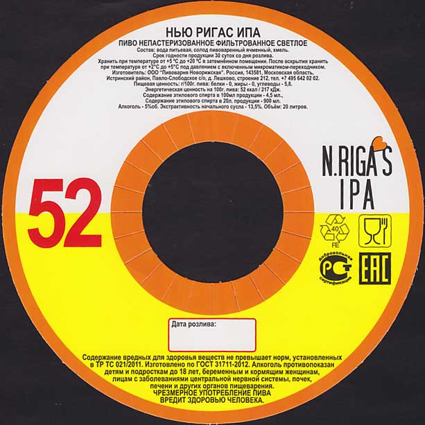 Нью Ригас бревери, сессион ИПА (Yellow wave).