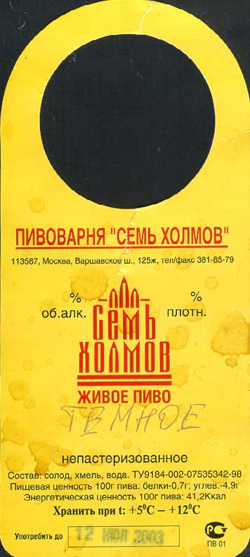Семь Холмов - как всегда отличилось своим превосходным темным сортом - "Дункель-карамель". Плотное, насыщенное, весьма карамельное с богатым послевкусием пиво. Может несколько слишком крепковато, особенно для жары, но вот для зимы самое то! Светлое пиво тоже весьма приятное, но меня смущает легкий "болотный" привкус, заметный только в непастеризованном пиве. |