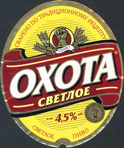Столько раз поминал Хейнекен, но вот добрался и до него. На этикетках Охоты добавили значок R. "Охота, светлое" - чистый и немного пустоватый вкус. "Охота, крепкое" - выраженный фруктово-винный аромат, который скрывает значительное присутствие алкоголя и спирт чувствуется только в горечи. Я не сторонник подобных сортов, но в целом вполне приемлемо пьется, так что популярность этого сорта понятна. | ||||||||||||||||||||||||||||||