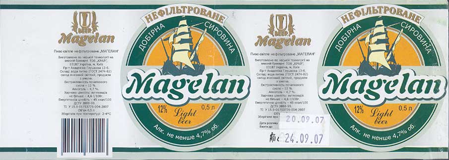 В Киеве, мы первым делом отправились на новую пивоварню фирмы "Край", расположенную на окраине города, в торговом центре и производящее пиво под брендом "Магелан". Пивоварня действительно расположена прямо в торговом зале супермаркета, есть барная стойка и можно попить разливное, а можно купить пиво в ПЭТах, розлитых под давлением. Заплатить можно прямо у стойки или при выходе, на кассах. | ||||||||||||||||||||||||||||||