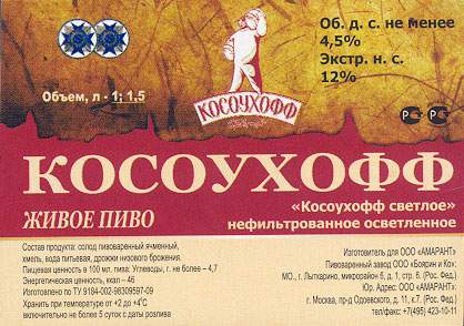 Амарант - новая пивоварня из Наро-Фоминска (хотя на выходных данных пива было указано, что оно сварено на Боярине и Ко в Лыткарино). "Косоухофф, пшеничное" - аромат сена. Вкус кисловатый и тоже с привкусом сена. Не классическое баварское пшеничное, а скорее в стиле британских элей - фруктово-горьковатое. "Косоухофф, темное" - цвет красный и вкус красного ирландского эля. Аромат мощный, хмелевой, вкус горько-фруктовый, хмелевой, лишь немного карамельный, даже характер ближе к элевому. Превосходно, пожалуй одно из лучших пив фестиваля! |