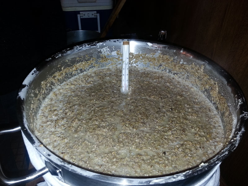Обнинск, Art Beer Cafe Quadrupel - заведение рассчитанное прежде всего на любителей бельгийского пива, но 12-го января, в нем состоялась варка пива полностью из российского сырья (российского солода и хмеля). Пиво варил Женя Рощин (при чем в свой день рождения!). Посмотреть на эту варку стоило, мне почему-то вспомнилась книга о пивоварении Симонова, написанная в конце XIX века, тот раздел где говорилось что введенный в то время в России акциз на объем заторного котла изменил способ затирания пива - затирать стали сусло в 2-3 раза более плотное чем нужно, а затем разбавляя сусло промывочными водами до нужной плотности (таким образом уменьшая акциз в 2-3 раза). Вот и Женя затирал именно так (но не из-за акцизов, а из-за ограничения на емкость посуды которую можно использовать в домашних условиях).