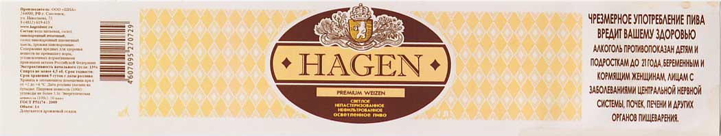 На обратном пути заехали пообедать в ресторан-пивоварню Хаген (компания Шиа, Смоленск). "Hagen, premium lager" - что-то не внятно мутное и коричневатое. Дрожжевое, солодовое с легкой фруктовой карамелькой... "Hagen, premium weizen" - типичный пшеничный лагер, а не классическое баварское пшеничное, мягче обычного ячменного, но вполне обычное пиво. Солод, хмеля нет, хотя он здесь и не нужен. | ||||||||||||||||||||||||||||||