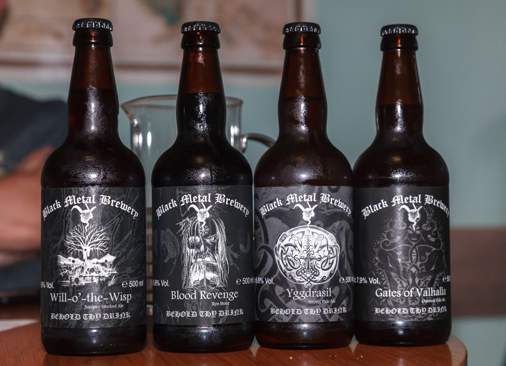 | Пивоварня "Black Metal Brewery" из Шотландии. "Yggdrasil" - землистые английские хмели и привкус вина. Довольно мощно. Чуть цитрусов. "Blood Revenge" - ржаной стаут. Кисловатый аромат, сильно жженый вкус, сладкое послевкусие. Рожь особо не видна. "Will-o'-the-Wisp" - копченый эль с можжевельником Копченость, сладость и может да, чуть можжевельника. "Gates of Valhalla" - овсяной эль, скорее в американском стиле. Сильные хмели, чуть цитрусов. Хотя и английские хмели присутствуют. Хорошо пьется, хотя весьма крепко. |